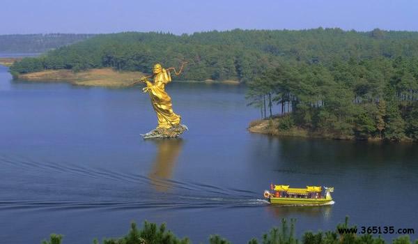 岱山湖:位于肥東縣與全椒縣交界處,東距合肥市區(qū)57km,西距江蘇省城南京市只有96km。岱山湖地屬亞熱帶氣候,溫暖濕潤(rùn),年平均氣溫15.7攝氏度,冬暖夏涼,四面青山環(huán)繞,山水交融,平均水深20米,最深處46米。水面有寬有窄,湖邊有灣有港,自成體系,具有開展各類水上項(xiàng)目的理想環(huán)境,湖邊山區(qū)森林覆蓋率90%以上,有400多種植物。岱山湖以其獨(dú)特的湖光山色聞名遐爾,“山不高而層巒疊嶂,水不大而氣象萬(wàn)千”,勾畫出了岱山湖的景色特征。