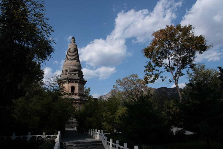玉皇塔 玉皇塔位于大石窩鎮(zhèn)高莊村北的山坡上。該塔建于遼代,坐北朝南,為八角七級密檐磚塔,通高15米。塔座為八角須彌座式,上面飾有磚雕的人物故事、動物圖案等。塔身正面開券門可以入塔,門內曾供奉漢白玉的玉皇大帝像,所以稱玉皇塔。塔身上承七級密檐,各角梁均懸有銅鈴,塔頂八角攢尖,八條頂脊自頂端的封頂鐵制寶珠向八方延伸,盡頭有垂獸、套獸。塔頂置寶珠,上立一根鐵柱塔剎,直插藍天。玉皇塔立于山巔之上,古樸典雅,工藝精湛,是房山古塔中的上品。 1995年10月20日,玉皇塔被北京市人民政府公布為為北第五批市重點文物保護單位。 |
