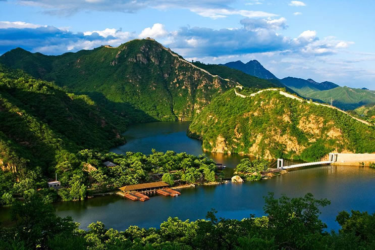 黃花城水長(zhǎng)城 黃花城水長(zhǎng)城位于九渡河鎮(zhèn)境內(nèi),距北京市區(qū)65公里,是以奇而著稱,融山川、碧水、古長(zhǎng)城為一體的旅游休閑勝地。而這里的“ 三絕景 ”更是引人入勝,嘆為觀止。 “一絕”建于明永樂年間的長(zhǎng)城盤旋于山脊之上,環(huán)繞在灝明湖畔,景色秀美壯觀。 “二絕”湖水將長(zhǎng)城自然斷開,形成長(zhǎng)城戲水、水沒長(zhǎng)城的奇特景觀。 “三絕”明代板栗園,古樹盤根錯(cuò)節(jié),形態(tài)各異。那巨龍戲珠之軀和撐掩蒼天之冠,令人贊不絕口。 沿古道、過木橋、涉小溪、跨怪石,上行可達(dá)黑龍?zhí)丁>皡^(qū)還有龍尾洞、紫翠峰、醉女山、石浪谷、情人峰、三珠連潭等自然景觀。 地名由來 因鎮(zhèn)域中部最大村名九渡河而得名。 地方特產(chǎn) 九渡河鎮(zhèn)為懷柔區(qū)板栗、核桃生產(chǎn)基地之一,另有梨、蘋果、柿子、紅果等。 |