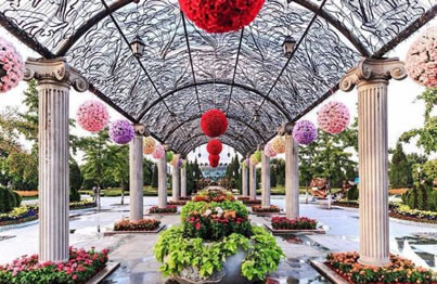 中國園林占地450平方米,采用我國南方傳統(tǒng)建筑風(fēng)格的白墻、灰瓦和花窗,極富江南韻味,古老的月亮門勾起您的懷舊情思。進(jìn)入花園,曲徑通幽的小道蜿蜒伸向遠(yuǎn)方,滿園的月季花鮮艷奪目。