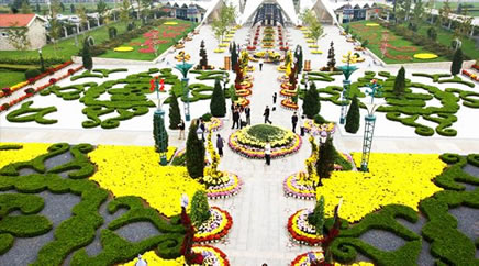 世界花卉大觀園景觀由七大溫室和十五個花園廣場組成。溫室內(nèi)全部采用電腦控制的通風(fēng)、加濕、恒溫、滴灌等新技術(shù),營造出適宜植物生長的環(huán)境,各溫室內(nèi)的植物千奇百怪、花團(tuán)錦簇。熱帶植物館中有數(shù)百年的佛肚樹、重陽木、古榕樹等喬木1800余種;沙生植物溫室有上百種仙人掌、仙人球;精品花卉廳有生動風(fēng)趣的植物生肖園、精品盆景園,電子觸摸屏為您介紹豐富多彩的各國花卉知識;頗具農(nóng)家田園風(fēng)光的蔬菜瓜果園中有重達(dá)150公斤的巨人南瓜;在茗賞百花廳可以賞花品茶;還專門為游人提供了直接參與花卉組培技術(shù)的活動空間和各類娛樂項目。室外景觀有各具特色的百花廣場、凡爾賽花園、水花園、夜花園、花之廣場、花之谷、牡丹園等園中之園;頗具異國風(fēng)情的荷蘭、俄羅斯、德國、奧地利花園讓世界花卉文化和精美的園林藝術(shù)在這里交相輝映,巧妙和諧地融合在一起。