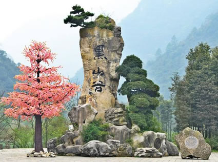 石皇傘位于河谷中央,兩塊30噸重的巨石緊緊地疊在一起像一把巨傘。為崩塌遺跡景觀,巖壁崩塌至谷底后受到谷底山洪沖蝕作用,因上下巖層強(qiáng)度差異,蹦落體下部遭受洪水沖蝕的強(qiáng)度大,小塊松散物被帶走,巖石變細(xì);崩落體上部巖石由于受河水沖蝕作用弱而保持原樣,其形狀很像一把撐開的大傘,故名石皇傘。