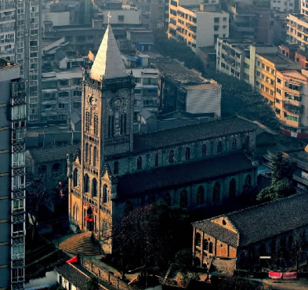 重慶市榮昌區(qū)天主教堂建成于1915年,是利用“余棟臣教案”的賠款修建。教堂位于榮昌縣城后西街,主體為哥特式建筑風(fēng)格,由圣堂主體樓、神父樓和教會(huì)學(xué)校三部分組成,后多遭破壞、占用,現(xiàn)存約四分之一。重慶榮昌縣天主教堂解放后被征用,1980年恢復(fù)宗教活動(dòng),F(xiàn)為省級(jí)文物保護(hù)單位,電影《1942》曾在此取景。該教堂于1915年由法國人設(shè)計(jì)并修建,主體建筑為歌特式建筑,是西南地區(qū)最大且保存最完整的教堂。