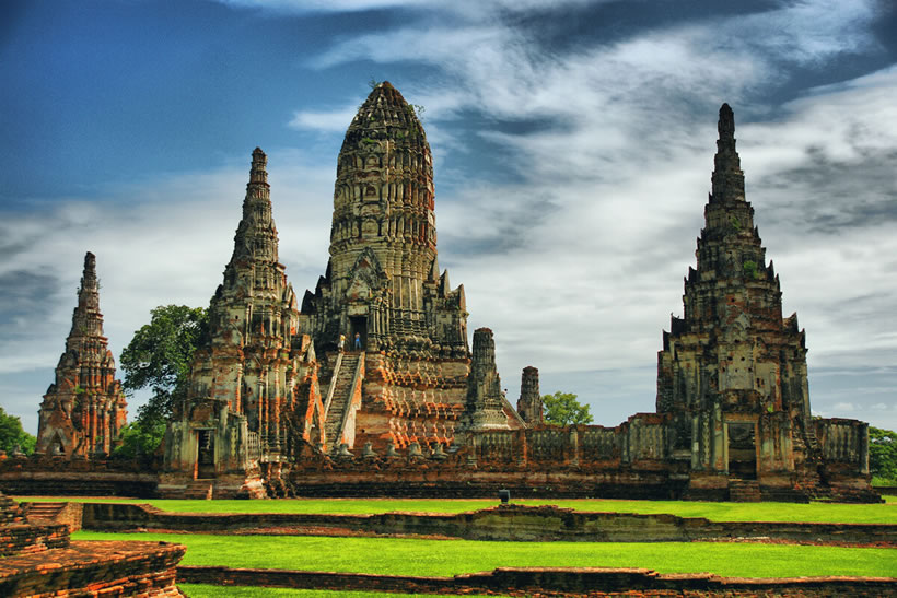 大城府(Phra Nakhon Si Ayutthaya) 大城府位于泰國中部,下轄16個縣,面積2556.6平方千米,人口約80萬。在泰國首都曼谷以北約80千米,湄南河、華富里河、巴塞河三河交匯,形成了一個天然河流島。漫步島上,一座座古老佛塔和寺廟,磚紅色的殘垣斷壁飽經(jīng)風霜,訴說著這里曾經(jīng)的輝煌。這里是泰國世界文化遺產(chǎn)之一——大城古城遺址的所在地。 大城古城始建于1350年前后,是泰國歷史上第二個封建王朝大城王朝的國都。14至18世紀,大城是一座繁榮富裕、人口稠密的大都市,同時也是重要的商業(yè)和宗教中心,僅主島區(qū)域的各式建筑就有超過3000棟。1767年,大城因戰(zhàn)爭而損毀,只有石質(zhì)佛塔、寺廟和宮殿得以保存。從1935年開始,泰國文化部藝術廳陸續(xù)開展對大城古城遺址的挖掘和保護工作。1976年,泰國政府宣布在古城遺址基礎上建立大城歷史公園,在大約20年的時間里,公園逐步從原有的289公頃擴大到了480公頃,最終覆蓋全島以及周邊部分村鎮(zhèn)。1991年,大城歷史公園最初的289公頃區(qū)域,包括瑪哈泰寺、玉佛寺、柴瓦納蘭寺等重要遺跡入選聯(lián)合國教科文組織的世界遺產(chǎn)名錄。大城古城遺址成為泰國僅有的3個歷史類世界文化遺產(chǎn)之一。聯(lián)合國教科文組織認為,歷史悠久的大城古城見證了泰國民族藝術誕生的杰出時代。