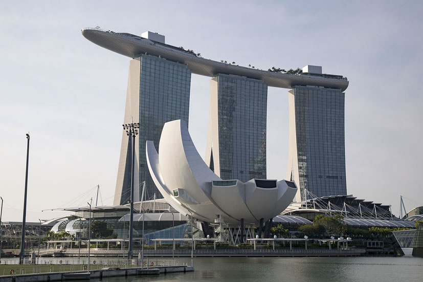 新加坡金沙娛樂城 新加坡金沙娛樂城位于濱海灣的新加坡金沙娛樂城設有賭場、歌劇院、藝術科學博物館、會議中心與展覽設施、零售商和多樣化的餐館等,共6大建筑系列。在高達55層樓的酒店內,擁有2561個房間。為酒店冠上榮耀之光的,是位于第57樓的金沙空中花園,這座占地一公頃的空中綠洲將匯集蔥蘢的綠蔭、雅致的花園,甚至一座無邊泳池。