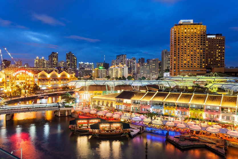 克拉碼頭 克拉碼頭位處新加坡河河畔,克拉碼頭昔日是個繁忙的貨物起卸岸及貿易中心,在改造計劃下,悉數(shù)變作餐館及酒吧。原來的60家倉庫和商店經(jīng)發(fā)展已成為200家商店、餐廳、酒吧和娛樂場所。駁船碼頭在克拉碼頭的下游,舊時的倉庫已經(jīng)改頭換面,這里至少有35家風格各異的酒吧和餐廳,也是市區(qū)沿河最具吸引力的娛樂場所之一。