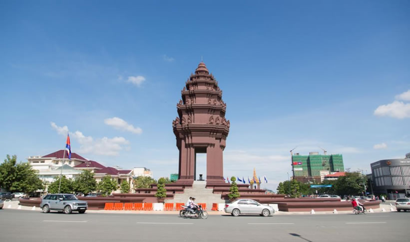 獨(dú)立紀(jì)念碑 柬埔寨獨(dú)立紀(jì)念碑位于諾羅敦大道和西哈努克大道交叉處,為紀(jì)念1953年11月9日柬擺脫法國殖民統(tǒng)治,獲得完全獨(dú)立而建。1958年3月落成,高37米,共7層,上有蛇神(柬文化象征)100條。每年獨(dú)立節(jié)時,柬國王或國王代表都要在此舉行隆重的慶典。來訪的外國元首也多到這里獻(xiàn)花圈。