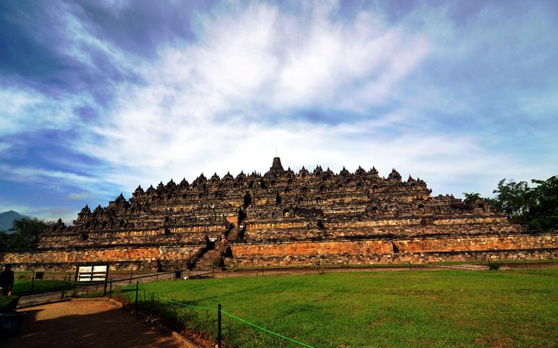 婆羅浮屠寺廟群 婆羅浮屠位于東南亞的印度尼西亞,大約建于公元750年至850年間,由當(dāng)時(shí)統(tǒng)治爪哇島的夏連特拉王朝統(tǒng)治者興建。“婆羅浮屠”這個(gè)名字的意思很可能來(lái)自梵語(yǔ)"Vihara Buddha Ur",意思就是“山頂?shù)姆鹚?rdquo;。婆羅浮屠大約建于九世紀(jì),公元1006年因火山噴發(fā)而被埋入地下。直到806年后的1812年被英國(guó)人萊佛士發(fā)現(xiàn),婆羅浮屠得以重見(jiàn)天日。與中國(guó)的長(zhǎng)城、印度的泰姬陵、柬埔寨的吳哥窟并稱為古代東方四大奇跡。 婆羅浮屠是作為一整座大佛塔建造的,從上往下看它就像佛教金剛乘中的一座曼荼羅,同時(shí)代表著佛教的大千世界和心靈深處。整個(gè)建筑分為三層,基座是五個(gè)同心方臺(tái),呈角錐體;中間是三個(gè)環(huán)形平臺(tái),呈圓錐體;頂端是佛塔。四周圍墻和欄桿飾以淺浮雕,總面積2500平方米;圍繞著環(huán)形平臺(tái)有72座透雕細(xì)工的印度塔,內(nèi)有佛龕,每個(gè)佛龕供奉一尊佛像。婆羅浮屠寺廟群在聯(lián)合國(guó)的援助下于1970年得以重建,現(xiàn)已經(jīng)成為印度尼西亞最著名的景點(diǎn)之一。