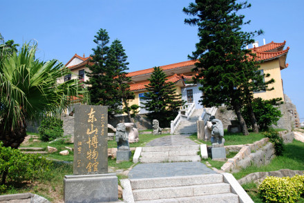 東山博物館,1988年6月開(kāi)館,1995年3月建成三層樓新館,建筑面積986平方米,占地1400多平方米,館內(nèi)設(shè)有“文物室”、“閩臺(tái)史前文化關(guān)系陳列室”、“陳洪甄書畫室”、“東山建縣八十周年建設(shè)成就回顧展“等展室。展出舊石器時(shí)代、新石器時(shí)代以及歷代文物、圖片、拓片等700多件。其中有東山人“化石”,萬(wàn)年前舊石器、各種動(dòng)物(鹿、熊、象、犀牛、羊)化石,還有石器、銅器、陶瓷器、玉器、木雕、古今兵器、書畫、民俗文物及一艘從臺(tái)灣飄來(lái)的臺(tái)灣高山族獨(dú)木舟等。