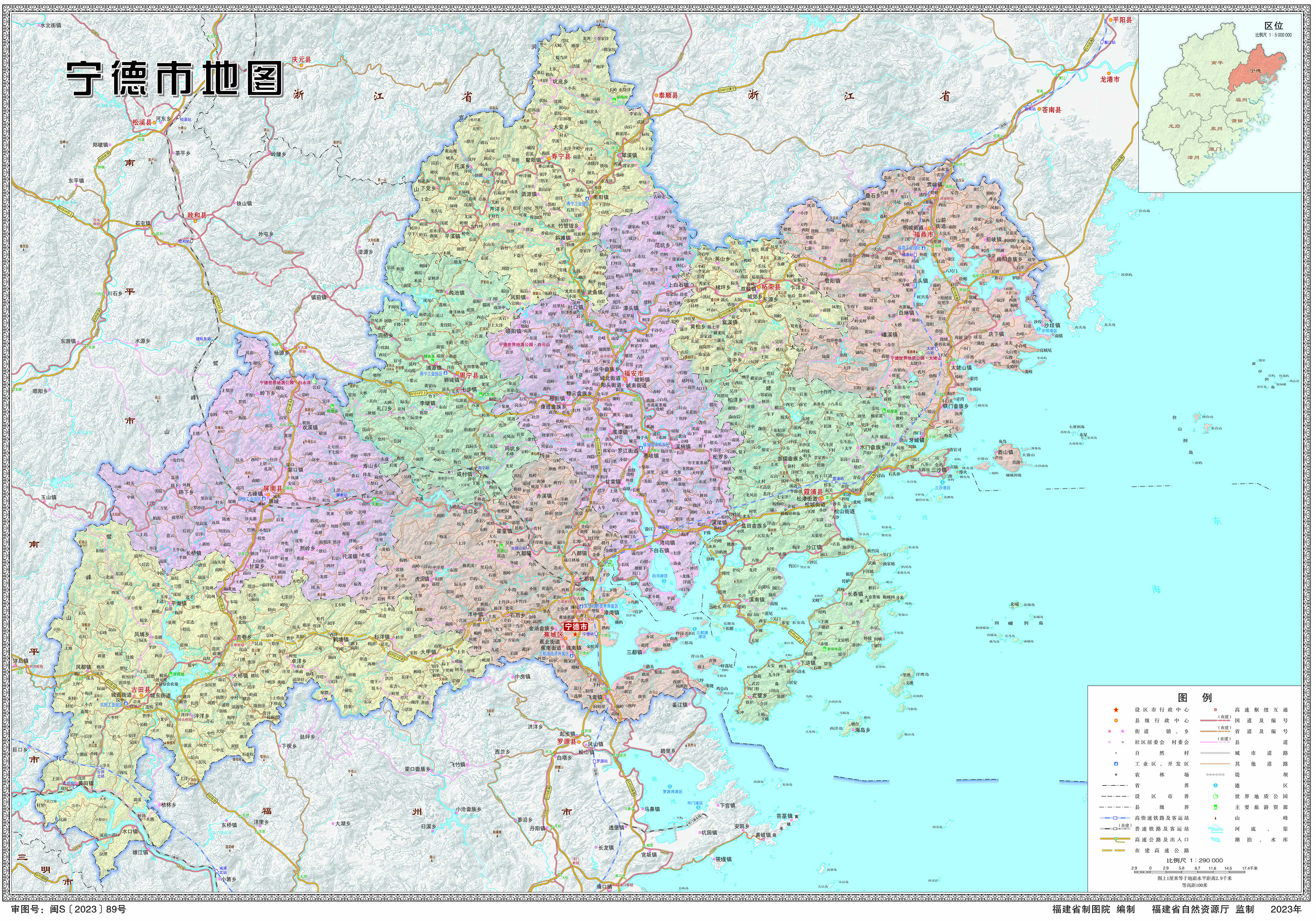 寧德市轄1個(gè)市轄區(qū)、6個(gè)縣,代管2個(gè)縣級(jí)市: