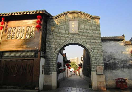 衣 錦坊是“三坊”中的第一坊,舊名通潮巷。據(jù)清《榕城考古略》記載:宋朝的“陸蘊(yùn)、陸藻兄弟典鄉(xiāng)郡居此,名祿錦,后王益祥致江東提刑任,更名衣錦!彼螘r稱“祿錦”,明朝更為“衣錦”,其實(shí)都是說坊內(nèi)有人在外出仕做大官,之后衣錦還鄉(xiāng),榮耀鄉(xiāng)里,所以坊名也改為了“衣錦”。過去稱“通潮”,則是因?yàn)檫@個地方是水網(wǎng)地區(qū),福州西湖、南湖的潮水可以通到這個坊巷的溝渠里去。坊中16號為清嘉慶進(jìn)士鄭鵬程居宅,其中的衣錦坊水榭戲臺最具特色。這是一個木構(gòu)單層平臺,四柱單開間,下建清水池塘,中隔天井,正面為閣樓。于此觀看戲劇演出,水清、風(fēng)清、音清,具有聲學(xué)原理和美學(xué)價(jià)值,是福州市現(xiàn)存的水榭戲臺。