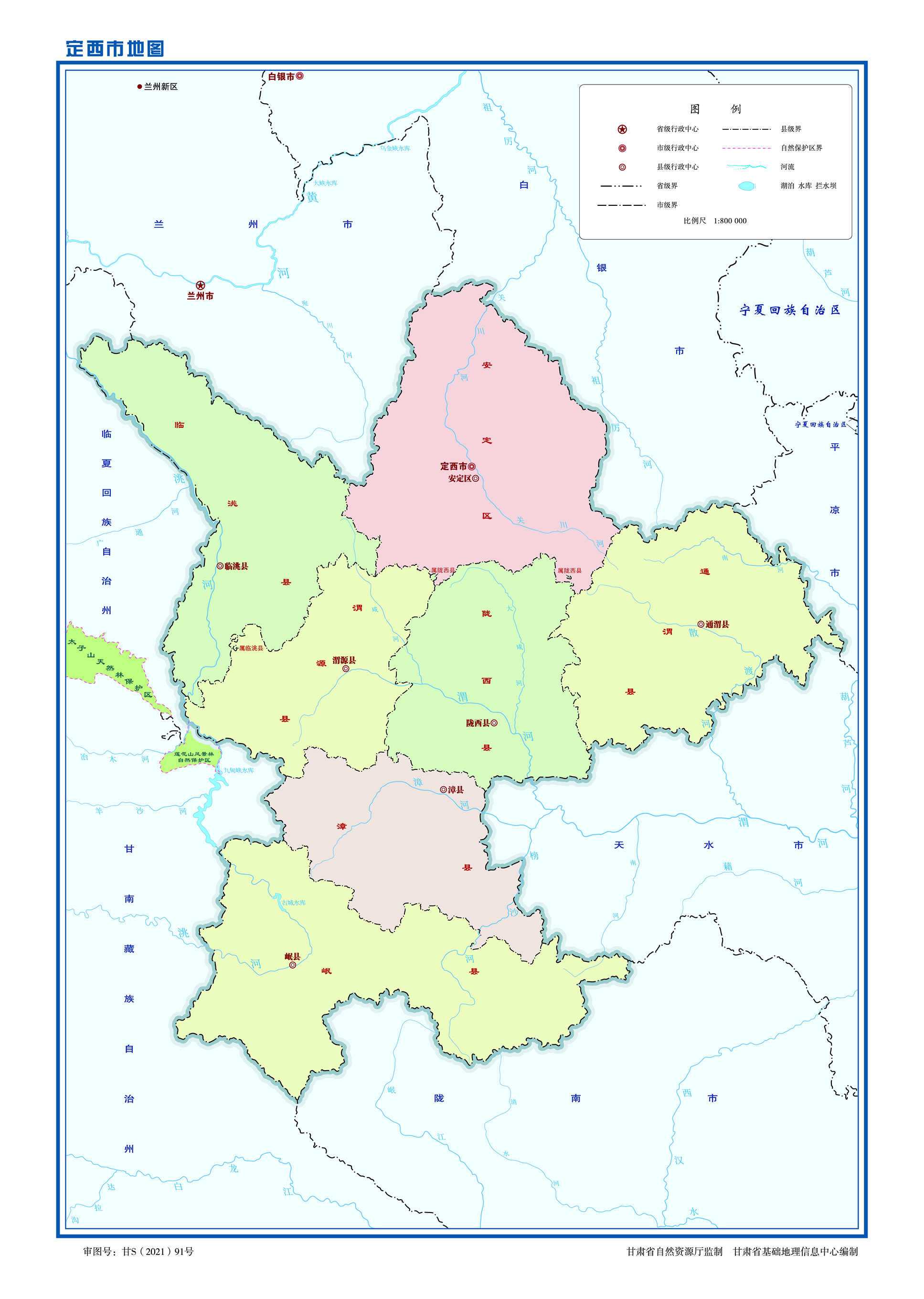 定西市轄1個市轄區(qū)、6個縣: