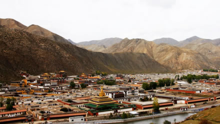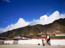 拉卜楞寺,位于甘南藏族自治州夏河縣城西0.5公里處。本名噶丹夏珠卜達(dá)吉益蘇奇貝瑯,簡(jiǎn)稱扎西奇寺,是我國(guó)藏傳佛教(即喇嘛教)格魯派(黃教)六大寺院之一,一般稱拉卜楞寺。第一世嘉木樣阿旺宋哲大師創(chuàng)建于清康熙四十八年(1709)?滴跷迨辏1714)建立“拉章”(即嘉木樣佛宮),“拉章”音變?yōu)椤袄防恪,意為寺院最高活佛府邸?/p>