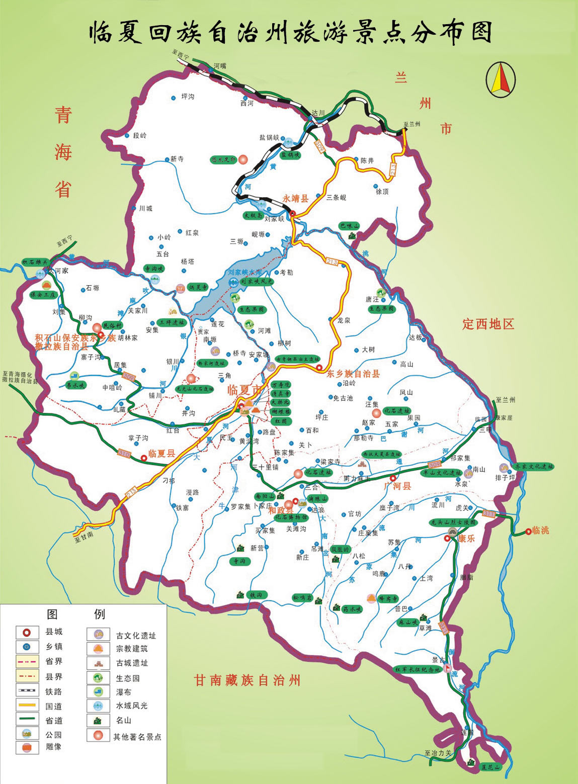 臨夏州轄1個(gè)縣級市、5個(gè)縣、2個(gè)民族縣: