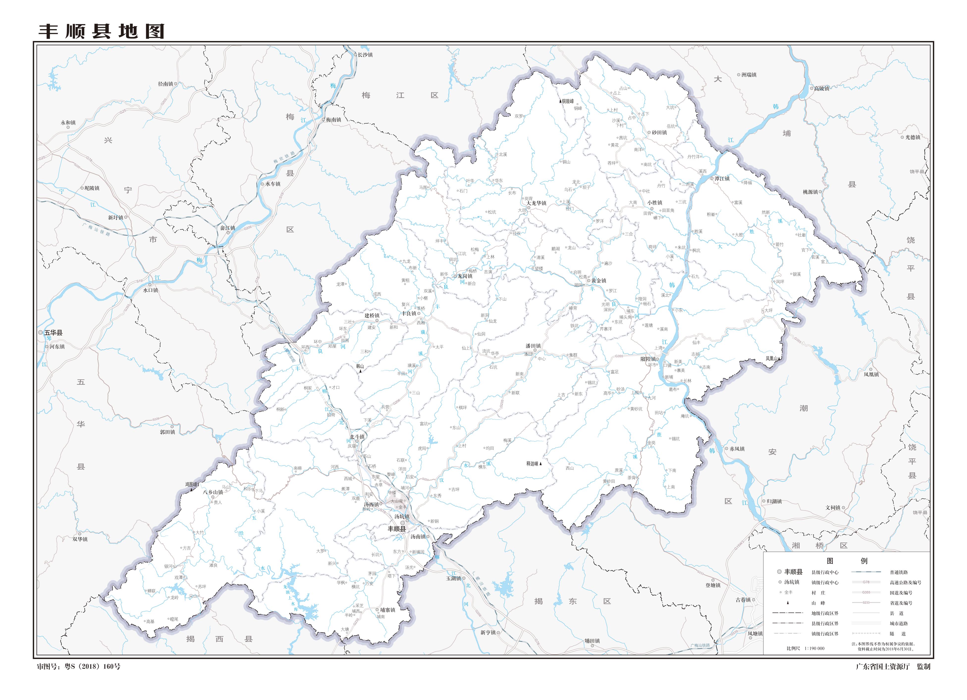 豐順縣轄16個(gè)鎮(zhèn):北斗鎮(zhèn)、湯西鎮(zhèn)、湯南鎮(zhèn)、埔寨鎮(zhèn)、建橋鎮(zhèn)、龍崗鎮(zhèn)、潘田鎮(zhèn)、黃金鎮(zhèn)、小勝鎮(zhèn)、砂田鎮(zhèn)、八鄉(xiāng)山鎮(zhèn)、豐良鎮(zhèn)、潭江鎮(zhèn)、湯坑鎮(zhèn)、留隍鎮(zhèn)、大龍華鎮(zhèn)