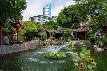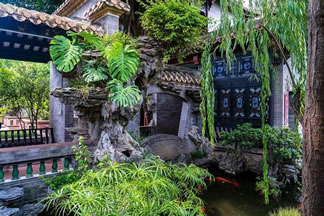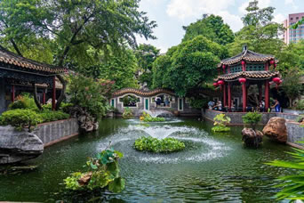 在花木配置方面,園內(nèi)花卉果木逾百種,除了嶺南園林常用的果樹(shù),還栽種了蘇杭園林特有的紫竹、枸骨、紫藤、五針?biāo)、金錢松、七瓜楓、羽毛楓等,并從山東等地搜集了龍順棗、龍瓜槐等北京樹(shù)種,其中銀杏、沙柳、紫藤、龍眼、水松等古木樹(shù)齡已百年有余。