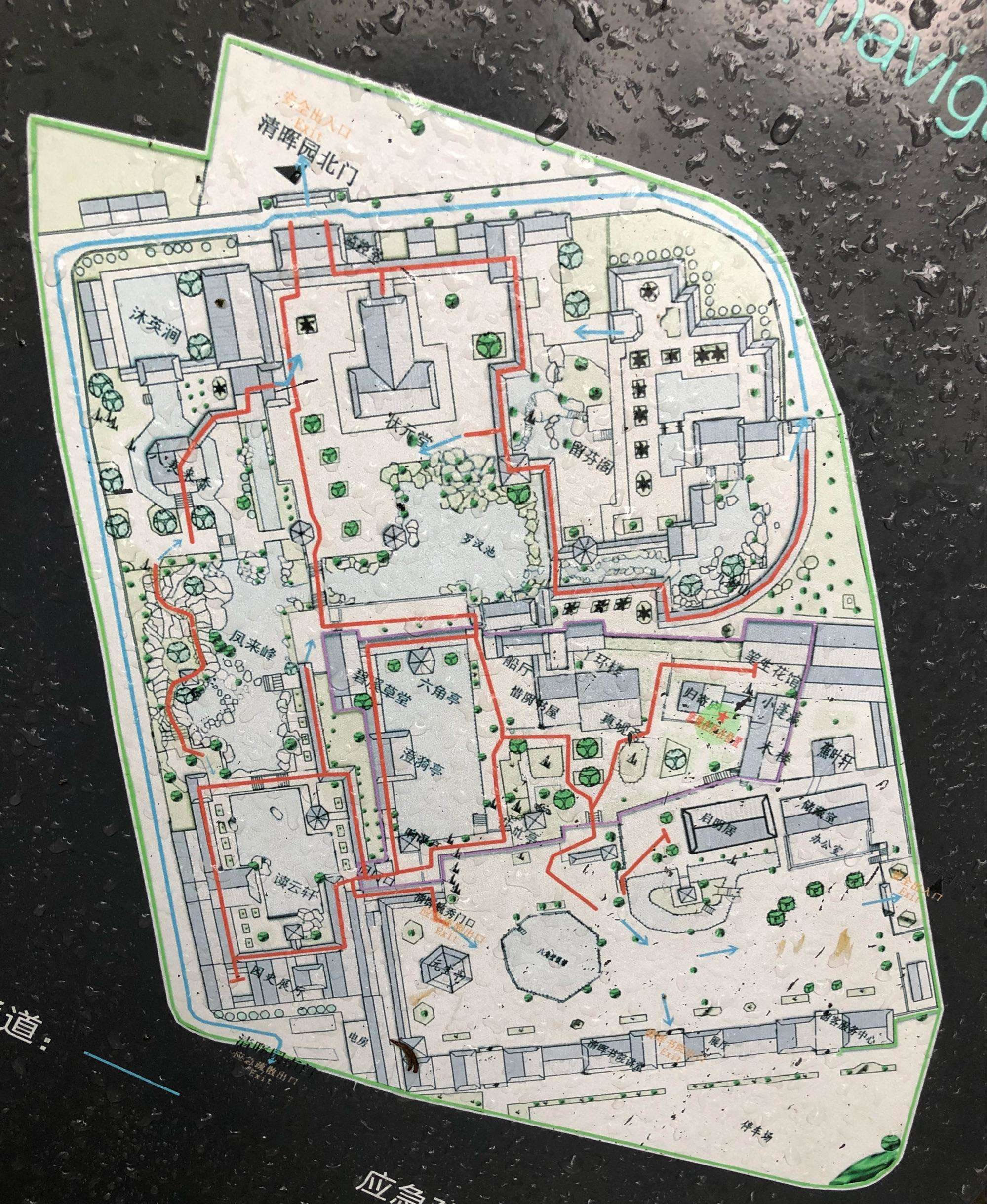 清暉園布局是大園包小園。清暉園的三大塊大體為:由原正門進(jìn)入的東南角區(qū),中部的舊園區(qū),西北部近年興建的新園區(qū)。區(qū)域間雖有分隔,但卻以游廊、甬道以及各式小門相互勾連,融為一體。以舊園區(qū)為例,其西部以方池為中心;中部偏北的船廳等是精華所在;南部的竹苑、小蓬瀛、筆生花館等組成庭院,形成園中有園,即大園包小園的格局和韻味。