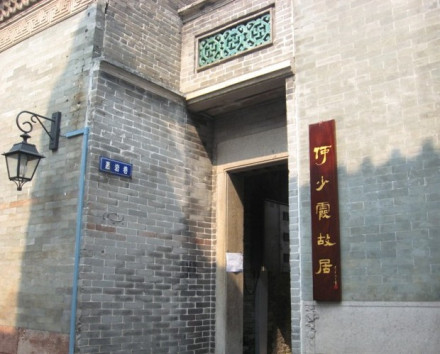 何少霞故居位于廣州市番禺區(qū) [2] 沙灣鎮(zhèn)北村車陂街惠巖巷7號,建于清代。屬硬山頂兩層青磚樓房,底層青磚石腳三間兩廊,建筑面積約105平方米,面寬10.2米,進深10.3米,墻基和門檻以花崗巖石砌筑,石門額上有磚雕。故居現(xiàn)由其后人居住,保存完好,由何少霞外甥朱偉森居住。