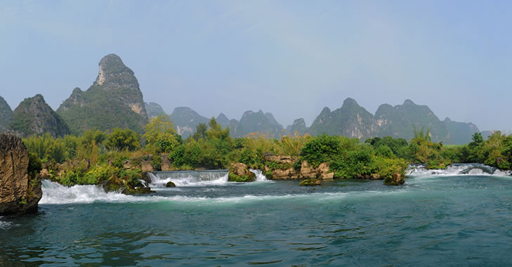 安平景區(qū)位于廣西大新縣雷平鎮(zhèn)安平村,距縣城25公里,距南寧165公里,景區(qū)內(nèi)山川秀麗,河流清澈,屬于典型的喀斯特地貌景觀。全長(zhǎng)45公里的黑水河貫穿全境,隸屬左江支流,河的兩岸群山綿延,奇峰聳峙,層巒疊翠,青竹秀水,交相輝映,景色極為秀美。坐在游船上,不僅可以看到翠竹、綠樹(shù)叢中的村落,欣賞天水一色的田園風(fēng)光,還可以看到河岸邊的奇石、水中的島嶼,更令人興奮的是還可以觀賞到從上游一涌而下的大小瀑布和激流,感受大自然給予的恩惠。