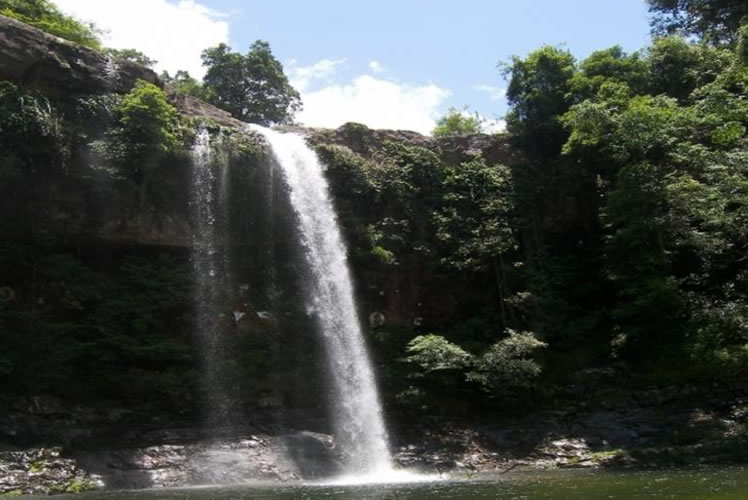 應(yīng)天瀑布在十萬大山掃把山下,瑤寨念文屯西南3千米的山谷中。瀑布落山外,巖板稍平闊,水口呈“凹”狀,飛瀑處壁形,高28米,巖壁間有一凹處;深寬均數(shù)米,形似“水簾洞”。春夏大雨,山洪暴發(fā);瀑布響聲如雷,數(shù)里外還震人耳膜,“應(yīng)天泉”由此而名。瀑下數(shù)十米,巨石如象;沉列溪中,同一溪流,距此瀑布約百米和二百米處,還有兩處小瀑布,高度均約十余米,當?shù)厝朔Q應(yīng)天瀑布為“頭龍”,下面小瀑布為“二龍”和“三龍”。