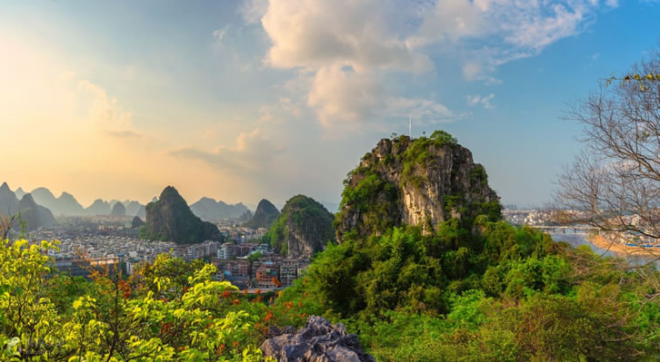 山系 疊彩區(qū)境內(nèi)有堯山、疊彩山、伏波山、虞山等山;有伏龍洲、南洲、螞蝗洲等島嶼;有試劍石、木龍洞、韶音洞、風洞、仙鶴洞、瞻鶴洞、還珠洞等奇石異洞。