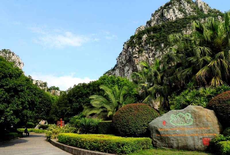 桂林園林植物園位于桂林市中心西南隅,環(huán)城西一路117號(hào)。園林植物園占地47.9公頃。園內(nèi)南溪河自西向東貫通全園,公園入口處的黑山因石灰?guī)r山石經(jīng)風(fēng)化之后呈墨黑色而得名。整個(gè)植物園以園林植物為造園骨架,掘土為池,構(gòu)木為亭,園區(qū)內(nèi)分別建有茶花園、春華秋實(shí)園、棕櫚園、榕樹園、木蘭園、銀杏楓香園、大草坪、桂花博覽園(蘇苑、杭州苑、上海苑、包公亭、天香臺(tái)閣苑)、水杉林、梅花園和珍稀植物園等精品園區(qū),還有巧借山形地貌構(gòu)筑的盆景園、下沉式廣場(chǎng)、櫻花園(日本園)、歐洲園(法國園)、相思泉等景觀式亭臺(tái)樓閣。園內(nèi)植物種類達(dá)1000多種,品種達(dá)2200多種。特別是桂花博覽園收集了桂林所有的優(yōu)良桂花品種,并引種了四川、浙江等地10多個(gè)優(yōu)良品種,共有桂花品種80多個(gè),是國內(nèi)外同類園區(qū)桂花品種最多,也是銀桂品種最多的桂花園,是全國3個(gè)“中國桂花品種繁育中心”之一,第二屆中國桂花博覽會(huì)的主會(huì)場(chǎng),為中國取得桂花國際登錄權(quán)作出了特殊貢獻(xiàn)。珍稀植物區(qū)森林茂密,曲徑通幽,有國家一級(jí)保護(hù)植物杪欏、金花茶等珍稀植物,也有國家二級(jí)保護(hù)植物金錢松、柔毛油杉、黃枝油杉、福建柏、興安楠、蝴蝶果、鵝掌楸、馬尾松、花櫚木等喬木。