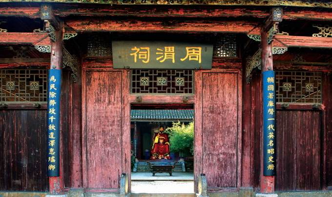 周渭祠即周王廟,位于恭城縣城東,建于明成化十四年(1478年),清雍正元年(1723年)重修,是祭祀宋御史周渭的祀廟。