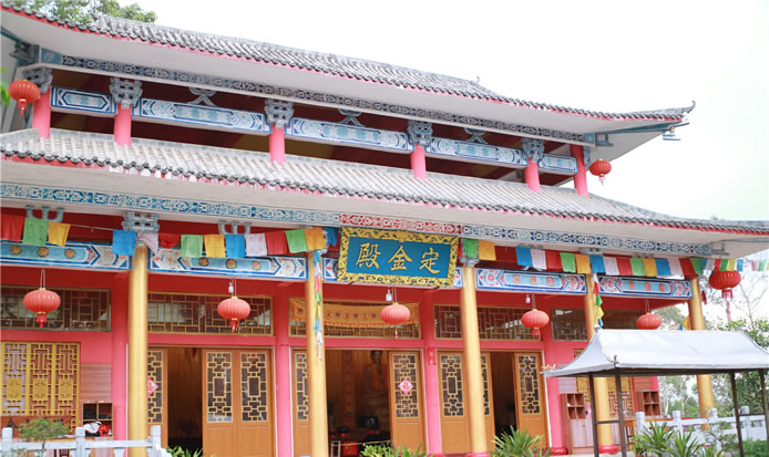 定金山禪寺位于定金山上,定金山禪寺由此得名。定金山禪寺是當時田州周邊的一大名寺,在20世紀初土改時一度被撤。后又在60年代的“文化大革命”破“四舊”的政治運動中再度被毀。80年代后期,定金山禪寺由群眾集資再度重建。建成的定金山禪寺以其規(guī)模宏大、殿堂巍峨、道場清凈成為當今巴馬的一座名寺,每逢農歷的月初一和十五,定金山禪寺香客絡繹不絕,香火不斷,成為巴馬的一道獨特的旅游風景線。