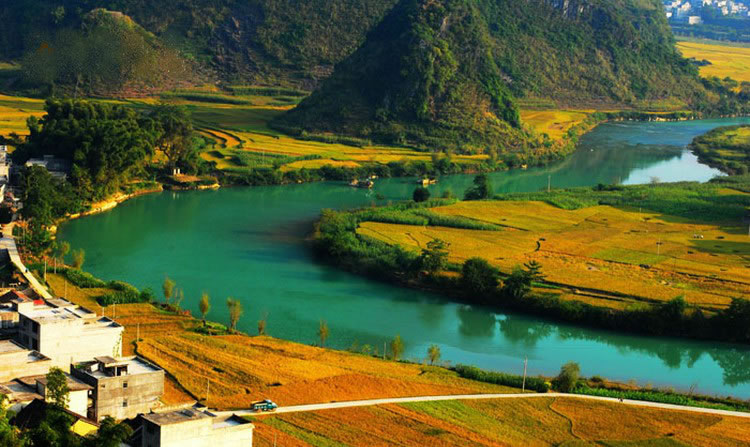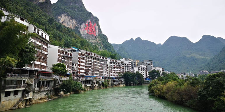 甲篆村在巴馬縣西北19千米處,甲篆鄉(xiāng)政府駐地,巴馬至鳳山公路經(jīng)此,盤陽河從距村址約2千米烈屯漠齋山的百鳥洞奔流而出,河灣斷續(xù),秀水瀠洄,兩岸奇峰峻巒,村屯錯落。甲篆村美景曾令到此探索壽鄉(xiāng)之秘的國外專家考察隊和區(qū)內外到此體驗生活的文藝家們嘆為觀止,因而素享“小桂林”之美稱。坡開村還盛產油魚,這種體肥肉嫩身骨細軟,煎時香油四溢。