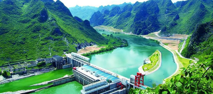 樂灘(惡灘)水電站庫區(qū)的紅水河源出于云南省沾益縣的南盤江,經(jīng)貴州流入廣西,是廣西以壯族為主體的少數(shù)民族的母親河、太陽河。紅水河是中國少有的水電資源。正在擴(kuò)建中的樂灘(惡灘)水電站預(yù)算投資39.7億元,裝機(jī)容量為60萬千瓦,年均發(fā)電量為35億千瓦時,是紅水河上的十個梯級水電站之一。