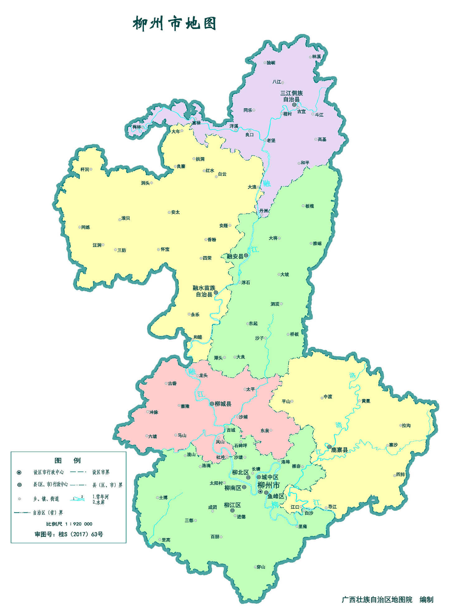 柳州市轄5個市轄區(qū)、3個縣、2個自治縣:
