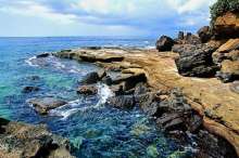 五彩灘,位于潿洲島東部,因退潮后,海蝕平臺(tái)在陽光照射下呈現(xiàn)出五彩斑斕的顏色而得名,是島上觀賞海上日出的絕佳地點(diǎn)之一,退潮時(shí),大片的海蝕平臺(tái)裸露出來,經(jīng)過海水打磨,猶如一幅幅印象派藝術(shù)畫卷。在五彩灘,可以同時(shí)看到海蝕崖、海蝕洞、和海蝕平臺(tái)三位一體的地質(zhì)結(jié)構(gòu);還可以看到潿洲先民就地取材修建房屋而留下的古采石場(chǎng)。