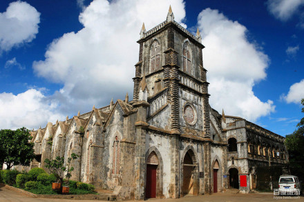 圣堂景區(qū)位于潿洲島盛塘村,是全國重點(diǎn)文物保護(hù)單位,“晚清四大天主教堂”之一。教堂由法國巴黎外方傳教士建于1853年,歷時(shí)10年建成,主體建筑保存較為完好,是中西文化融合共生的歷史見證。整座建筑主要取材于海底珊瑚沉積巖,運(yùn)用周密的力學(xué)設(shè)計(jì)建成,是典型的文藝復(fù)興時(shí)期法國哥特式教堂,外表高聳的羅馬式尖塔有著“向天一擊”的動(dòng)勢(shì),造成一種“天國神秘”的幻覺,堪稱別具一格。