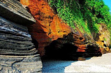 潿洲島北部潮上帶有新老兩道沙堤,南部海蝕崖上有三層海蝕洞,崖腳有兩極海蝕臺(tái),反映了第四紀(jì)以來潿洲島一直在間歇地抬升,其幅度可超過20多米。