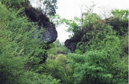 “千年一吻”景點(diǎn),又叫“對嘴巖”!扒暌晃恰庇蓛勺嗡朴H吻的山巖構(gòu)成,左巖高大、右?guī)r矮小。兩巖底下形成深谷,谷內(nèi)幽深,冬暖夏涼,與周圍的杜鵑花相輝映。一年四季,谷外景色或姹紫嫣紅或冰封雪蓋,不過任憑谷外寒來暑往,景色多變,谷內(nèi)始終保持迷人的春色。