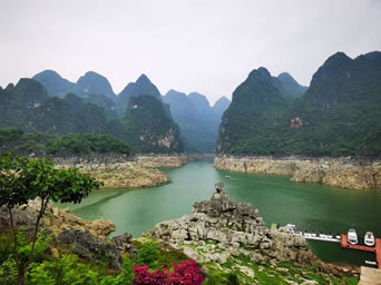 在鄭屯附近的峰林之中,還有古廟、古營(yíng)盤。頂效附近又有世界罕見的"貴州龍化石"和1.2萬年前的"興義人"文化遺址。峰林之中還有國(guó)家級(jí)風(fēng)景名勝區(qū)馬嶺河峽谷和省級(jí)風(fēng)景區(qū)泥幽石林及萬峰湖風(fēng)景區(qū)。泥曲石林像萬峰林中的一缽花籃。萬峰湖湖面開闊秀麗,港灣幽深,沿岸峰林、石林、溶洞、天坑、森林密布,構(gòu)成眾多的景觀景點(diǎn)。尤其獨(dú)特的是一水連三省,民族風(fēng)情濃厚。