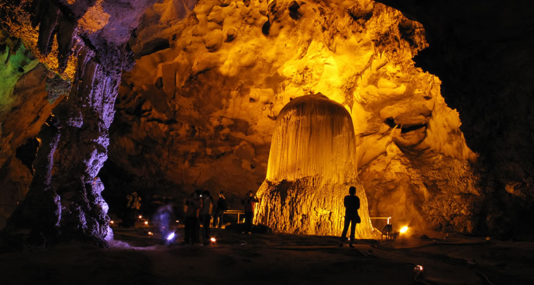 天鐘洞長(zhǎng)二千公尺,洞廳高大,廓道迂回。鈣化堆積物發(fā)育良好,形態(tài)逼真生動(dòng),且洞內(nèi)道路平坦,可觀性強(qiáng)。洞內(nèi)鐘乳石多酷肖動(dòng)物,有鱷魚廳,金雞廳、百獸廳和犀牛廳等。