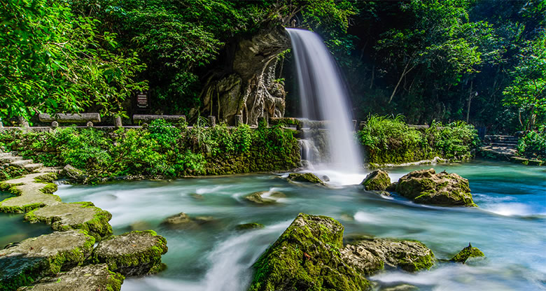 小七孔風(fēng)景區(qū),位于貴州省黔南布依族苗族自治州荔波縣孟柳風(fēng)情小鎮(zhèn)旁,在荔波縣城南部30余千米的群峰之中,距大七孔景區(qū)5千米,景區(qū)全長(zhǎng)7千米。小七孔風(fēng)景區(qū),響水河上橫跨著一座青石砌成的七孔拱橋,“小七孔風(fēng)景區(qū)”因此得名。