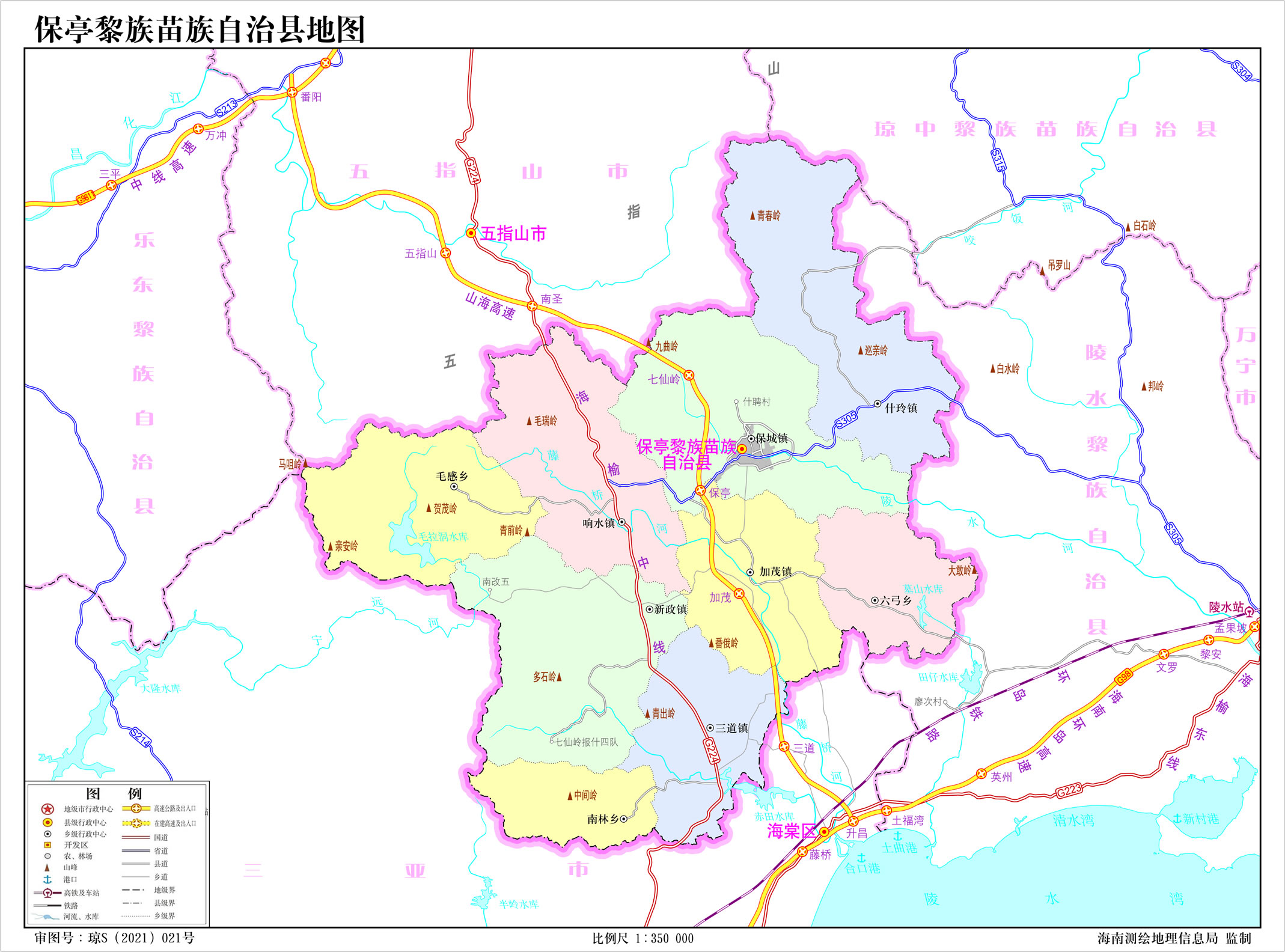 保亭黎族苗族自治縣轄6個(gè)鎮(zhèn)、3個(gè)鄉(xiāng):