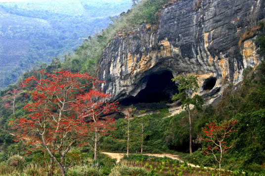 皇帝洞位于昌江黎族自治縣南部王下鄉(xiāng)牙迫村南瑤河畔的五勒嶺下,距縣城石祿鎮(zhèn)60余千米。洞寬約60米,深約130米,高25米,面積約7800平方米,可容納上萬人。