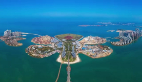 中國海南;◢u位于排浦港與洋浦港之間的海灣區(qū)域,南起排浦鎮(zhèn),北至白馬井鎮(zhèn),距離海岸大于600米,總跨度約6.8千米。由三個(gè)獨(dú)立的離岸式島嶼組成,規(guī)劃填海面積約8平方千米,規(guī)劃平面形態(tài)為盛開在海中的三朵花,故人工島取名為“;◢u”。