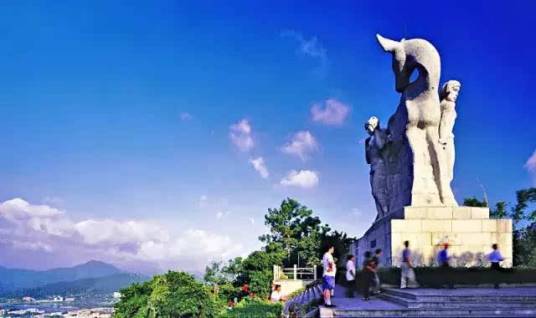 鹿回頭山頂公園位于三亞市南部3千米的海邊小山上,伸向南海、狀似坡鹿。這里三面臨海,四季山青,以其美麗的神話傳說(shuō)聞名于世。主峰海拔275.1米。鹿回頭山頂已建設(shè)成一座美麗的山頂公園,并根據(jù)這個(gè)美麗的傳說(shuō)在山上雕塑了一座高12米,長(zhǎng)9米,寬4.9米的巨型雕像。三亞市也因此被人們稱為“鹿城”。