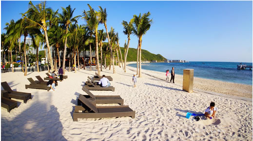 亞龍灣位于市區(qū)以東30公里,1992年經(jīng)國務(wù)院批準(zhǔn)為國家級旅游度假區(qū),享有“天下第一灣”之美譽(yù),海灣近10公里,海水能見度達(dá)20米以上,灣內(nèi)風(fēng)平浪靜,海水湛藍(lán)。亞龍灣屬典型的低緯度熱帶季風(fēng)海洋性氣候,全年長夏無冬,陽光充足,碧海、沙灘、空氣、陽光和綠色融為一體,海內(nèi)外游客盛贊“不是夏威夷,勝似夏威夷。”