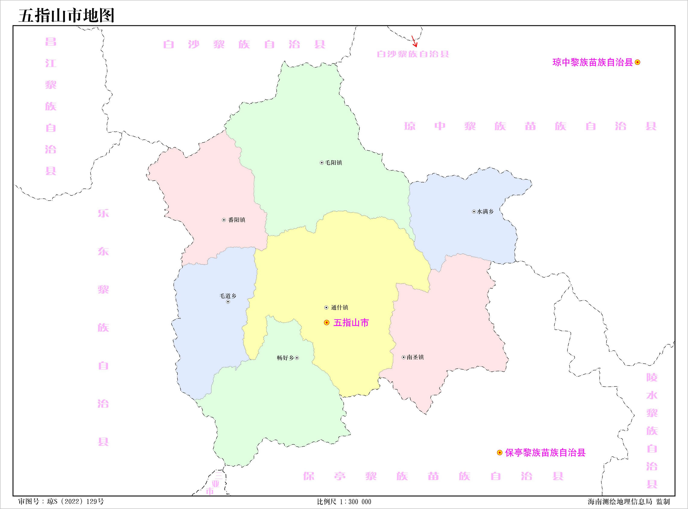 五指山市轄4個(gè)鎮(zhèn)、3個(gè)鄉(xiāng)、1個(gè)居: