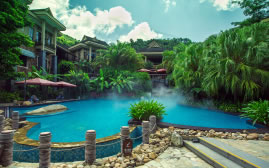 呀諾達(dá)雨林一號度假酒店坐落在呀諾達(dá)雨林文化旅游區(qū)核心區(qū)域雨林谷內(nèi),設(shè)計(jì)理念以尊重自然為原則,低碳環(huán)保節(jié)能為導(dǎo)向,有23間(套)豪華客房,所有客房均配有帶衛(wèi)星頻道的液晶電視、帶免費(fèi)寬帶的電腦、直撥電話、私人保險(xiǎn)箱、迷你酒吧等設(shè)施,還配套有中餐廳、西餐廳、棋牌室、戶外泳池、溫泉泡池等,以及1間多功能廳。