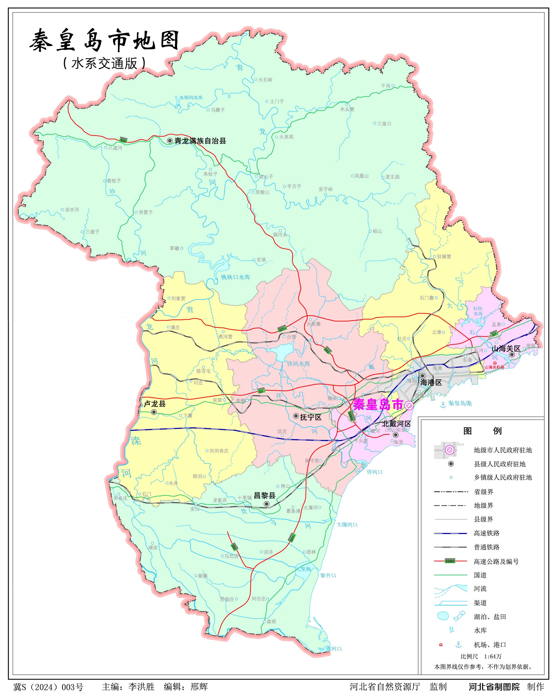 秦皇島市轄4個市轄區(qū)、2個縣、1個自治縣: