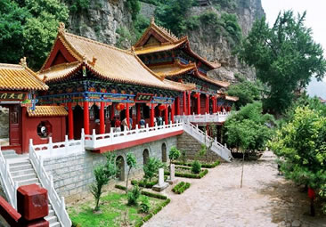天桂山的青龍觀,原是為明朝末代崇禎皇帝修建的歸隱行宮。明朝末年,李自成起義嚴(yán)重動(dòng)搖了明廷皇權(quán)。崇禎皇帝朱由儉在義軍紛起逼近北京的情況下,預(yù)感江山不穩(wěn),便密派心腹太監(jiān)林重萆出京選隱地修建行宮,以防不測(cè)。故所有的建筑既有皇宮之名,又有道教之稱(chēng),是中國(guó)唯一政教合一的古建筑群。清初一百年間,青龍觀屢有增設(shè)和修葺,擁有大小建筑十二處之多。其中真武殿、蒼巖殿和大光明殿共為青龍觀的三大建筑。在這座集皇家園林、道教宮觀和大自然秀麗景觀于一體的風(fēng)景名勝區(qū)內(nèi),青龍觀的龐大建筑群,依山就勢(shì),隨崖而建,真可謂陡崖鑲金,絕壁嵌珠,巧奪天工。天桂山既有雄秀交融的天然風(fēng)光,又有皇家園林的高貴氣韻和道家仙山的莊嚴(yán)氣勢(shì)及神秘色彩,俗有“皇家道院”之稱(chēng),“北方桂林”之譽(yù)
