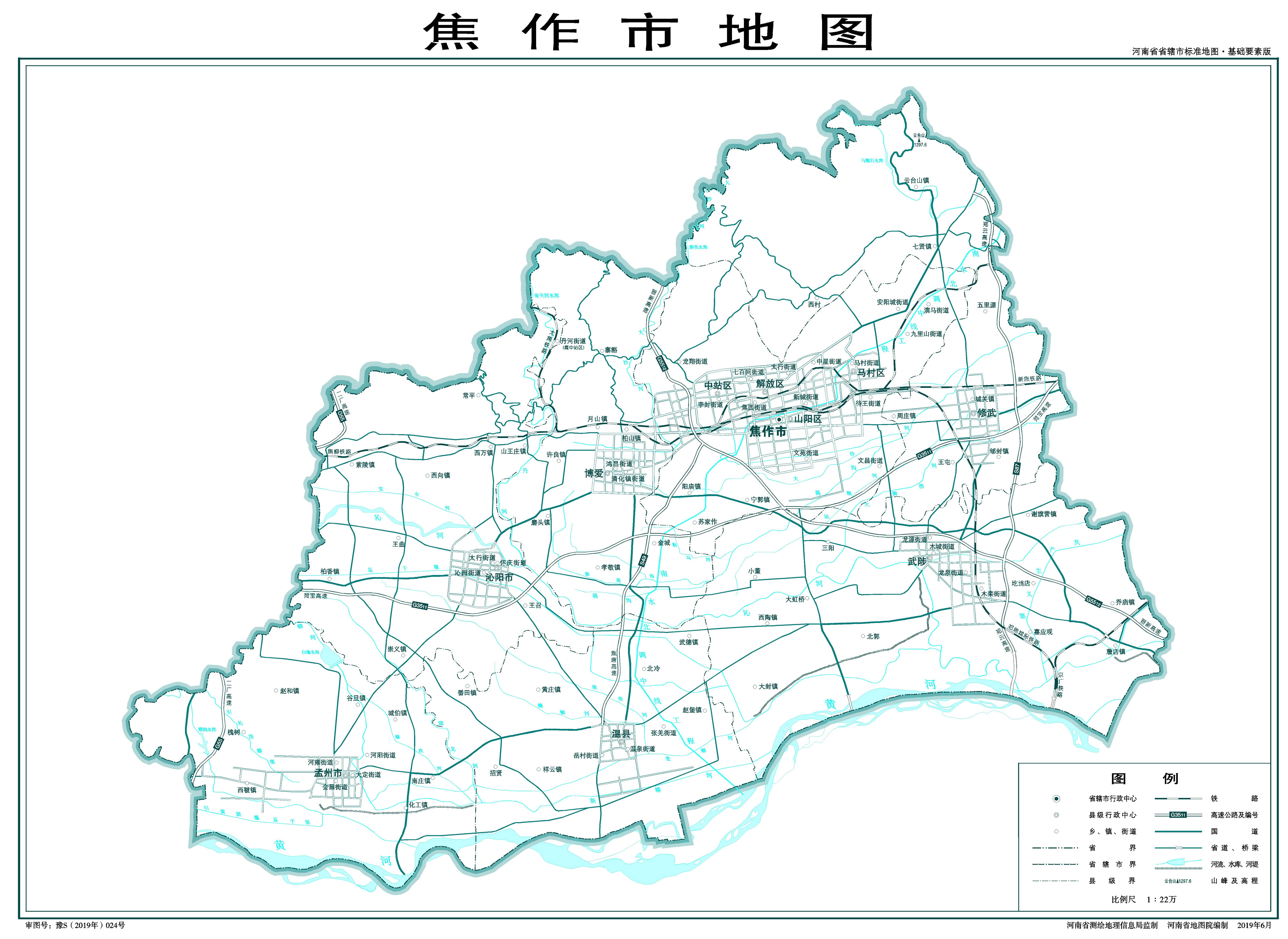焦作市轄4個(gè)市轄區(qū)、4個(gè)縣,代管2個(gè)縣級(jí)市: