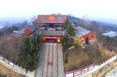 芒山寺位于芒碭保安山南峰極頂。廟宇坐北朝南,屬仿明清建筑。