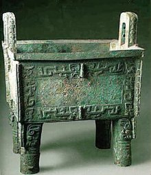 后母戊鼎,1939年從王陵區(qū)出土,通高1.33米,長1.10米,寬0.78米,重達(dá)875公斤,是世界上已發(fā)掘的最大的一件青銅器,是我們的國寶。如此大的重器,澆鑄起來特別困難。據(jù)估計(jì)制造這樣的重器需要明確的分工和協(xié)作,從煉銅的澆鑄,從制模到拆范需要130多人同時(shí)施工。青銅器中,銅、錫、鉛的含量比例,與現(xiàn)代所鑄青銅中銅、錫、鉛的比例基本相同中,可以想象當(dāng)時(shí)治煉技術(shù)是何等的高超。鼎最開始的作用只是一口煮肉用的鍋,到后來,隨著生產(chǎn)力的發(fā)展,逐漸變成了權(quán)力的象征。